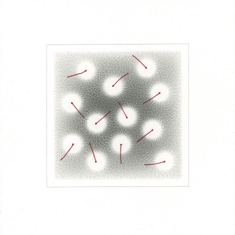 Ballpoint pen, thread, and pencil on rag paper. Image size: 3.625 x 3.625 inches.