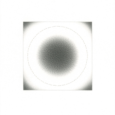 The artist’s hair, and pencil on rag paper. Image size: 3.625 x 3.625 inches.