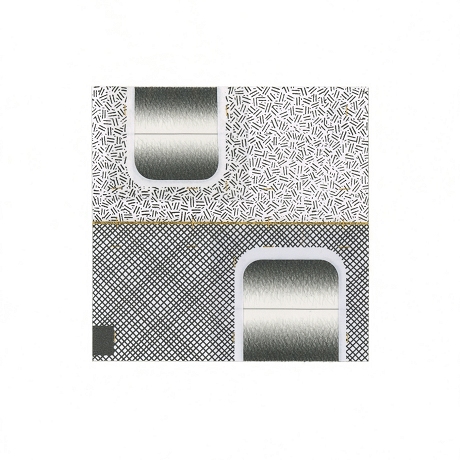 Ballpoint pen, pencil, and thread on rag paper. Image size: 3.625 x 3.625 inches.